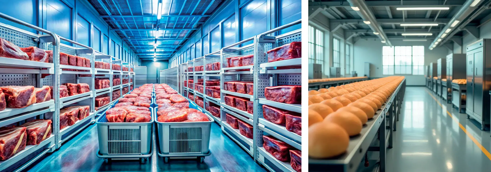 - Getrennte Bereiche für Prozesse und Temperaturzonen, für maximale Lebensmittelsicherheit und Kontaminationsschutz.