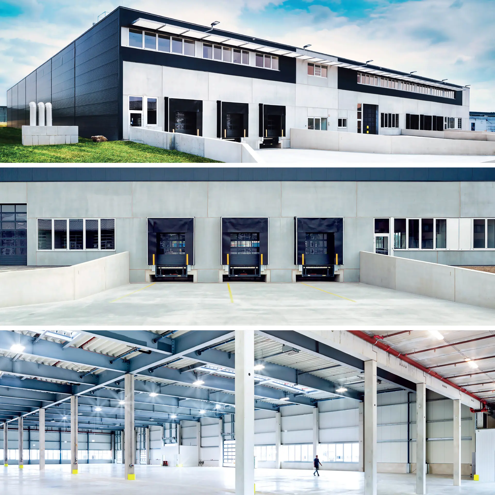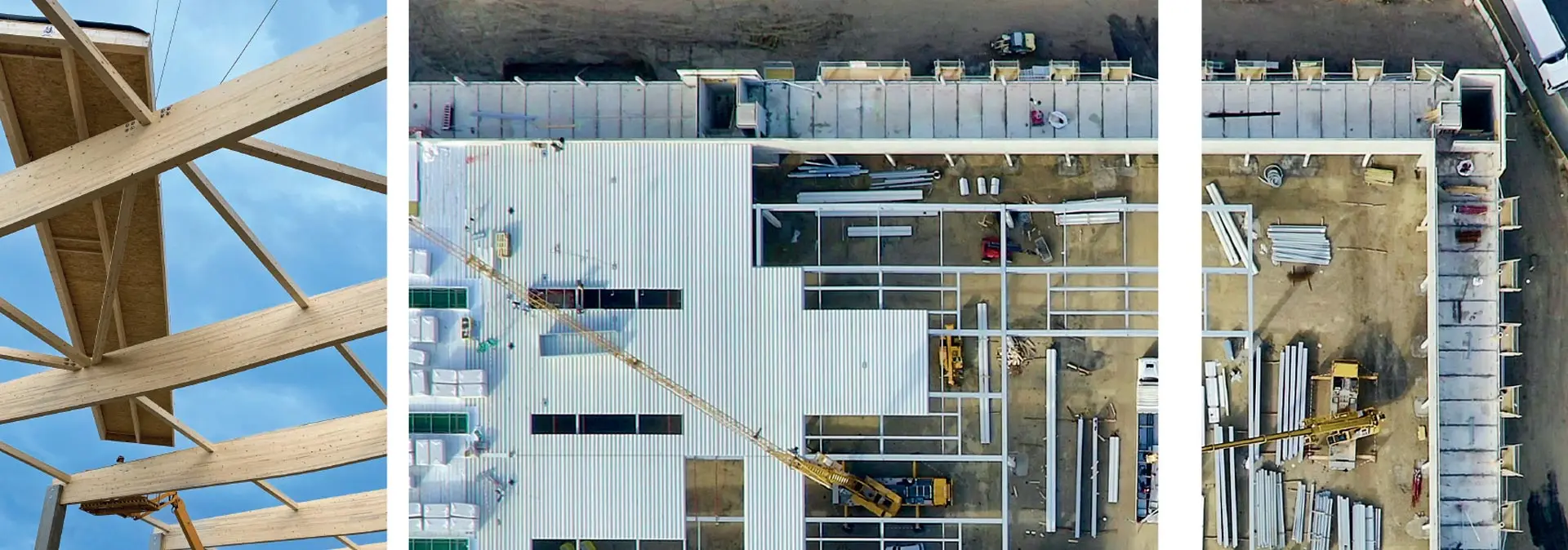 Minimaler Stützeneinsatz für maximale Flächennutzung, basierend auf innovativer Stahl- und Holzträgerbauweise – für flexible Raumkonzepte, optimale Nutzung und effiziente Logistikprozesse.