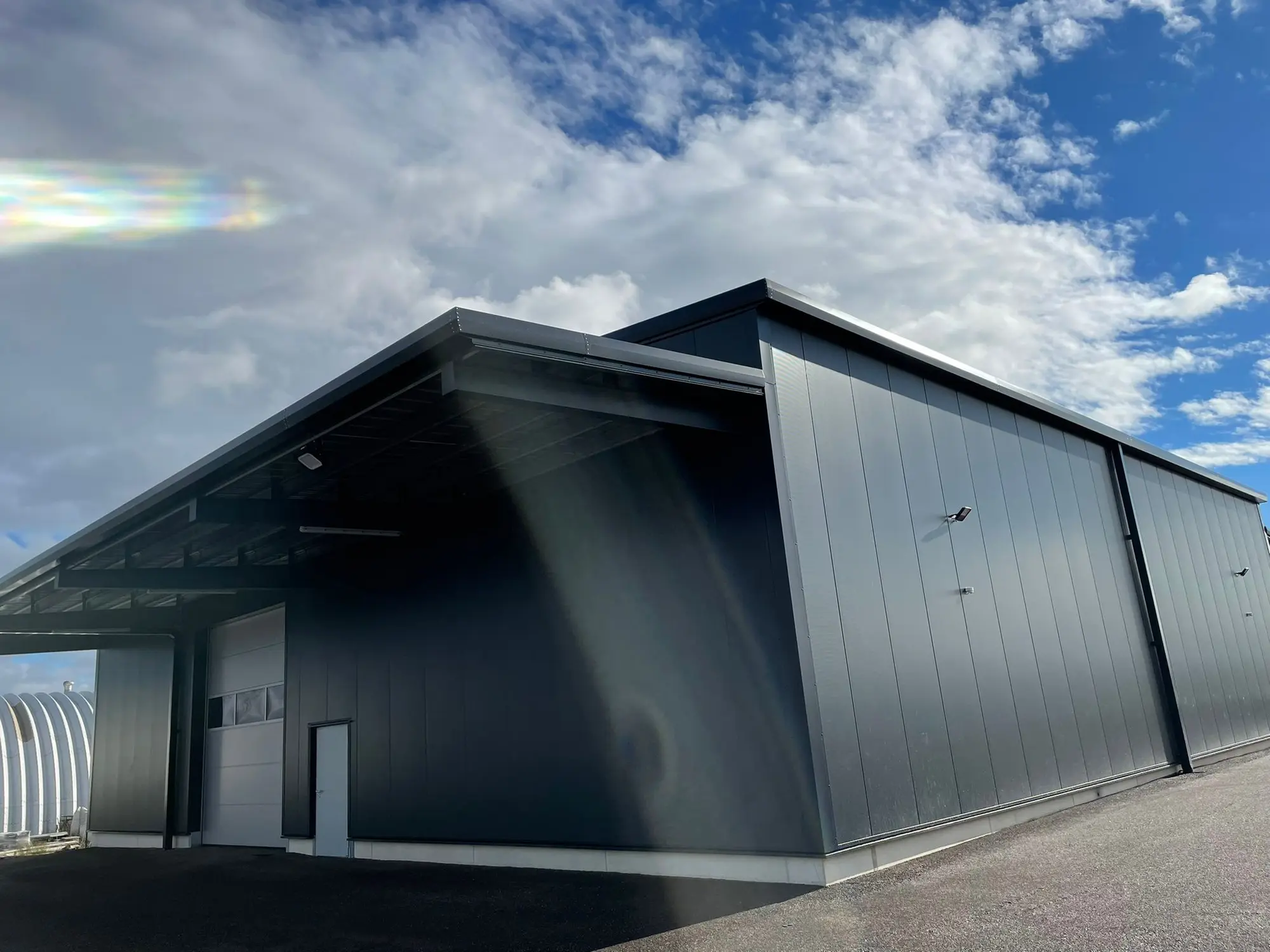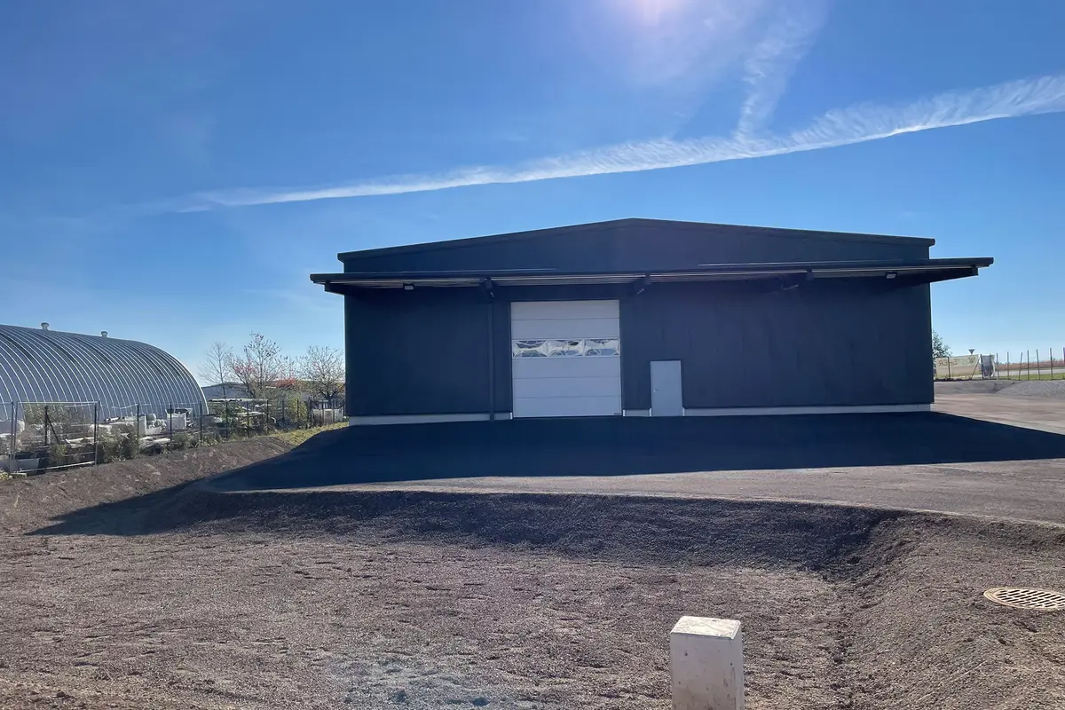 Umso mehr freut es uns, dass wir wiederum mit der Konzeptentwicklung und der Bauausführung der neuen Halle mit rund 500 m² betraut wurden. Nach nur fünf Monaten Bauzeit konnte die Halle an den Bauherren übergeben werden. Ein besonderer Fokus lag dabei auf einer freitragenden Halle, da diese Konstruktion einen möglichst großen Produktion- & Lagerfreiraum bietet.