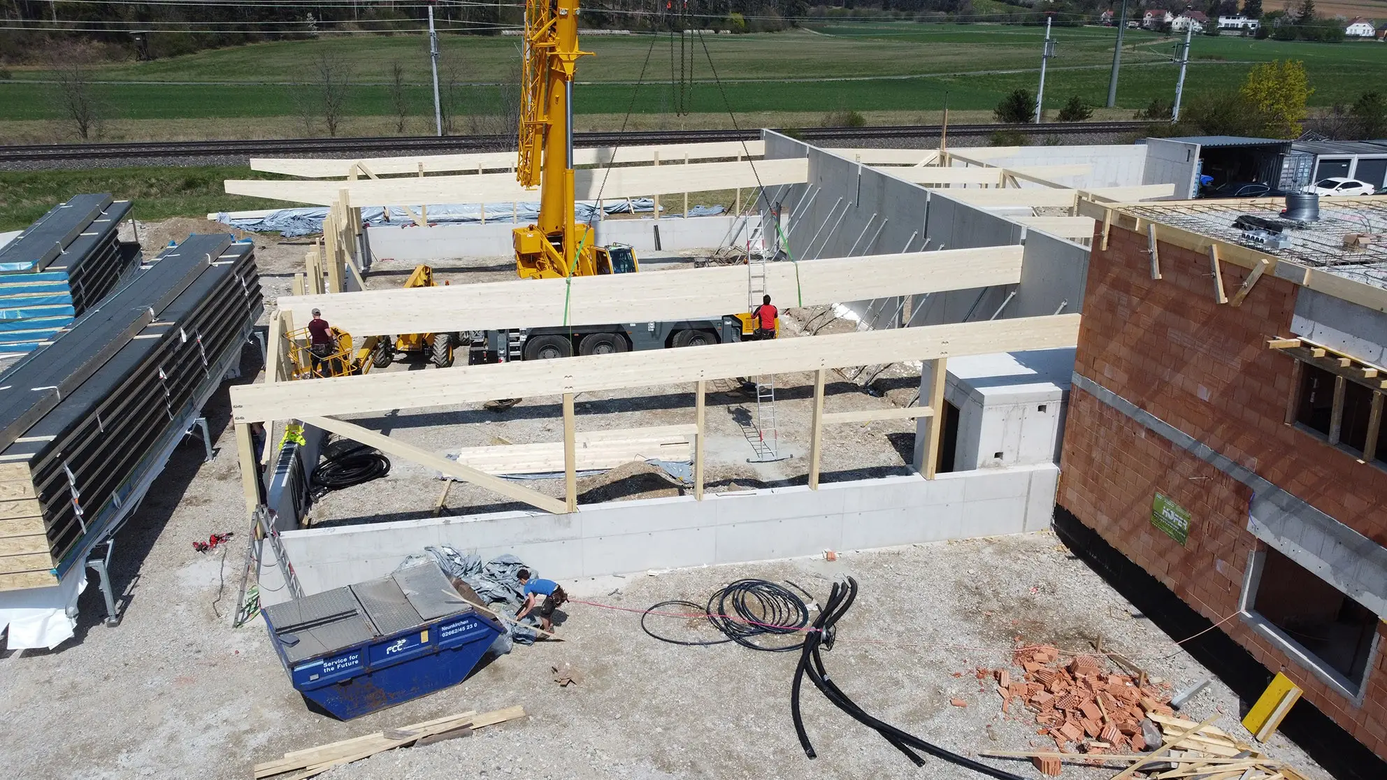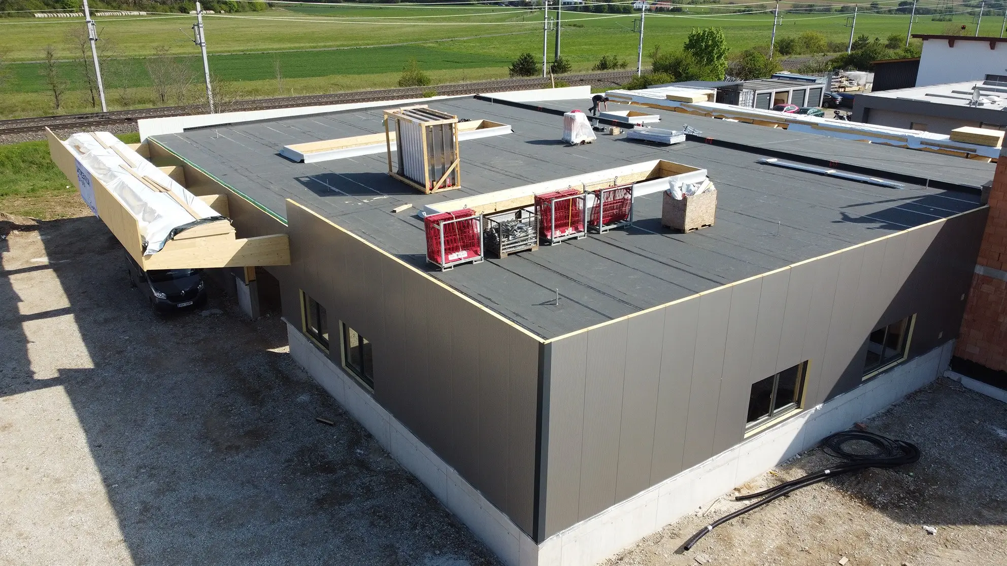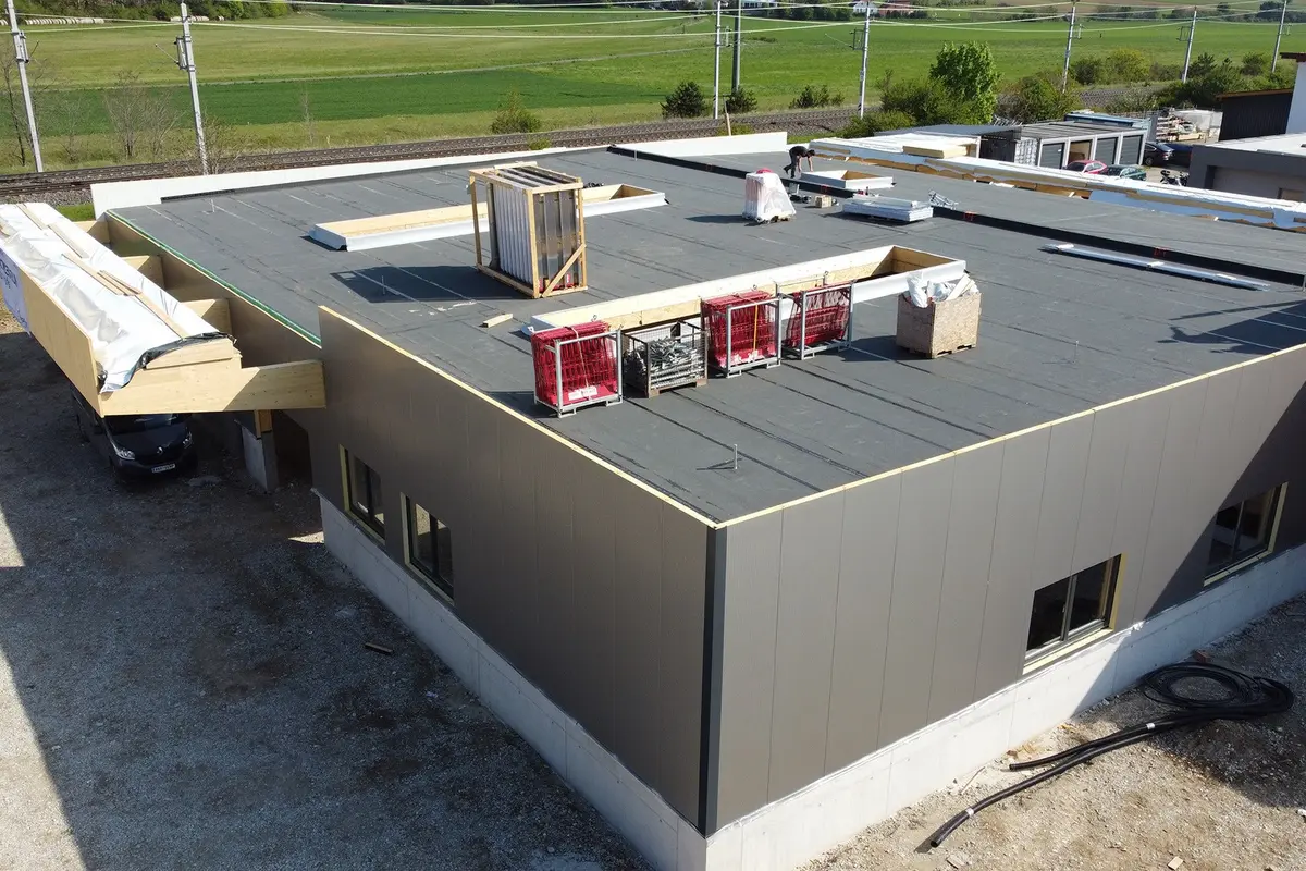 - 1250 m² vorgefertigte Dachelemente inkl. werkseitig aufgebrachter Dampfsperre