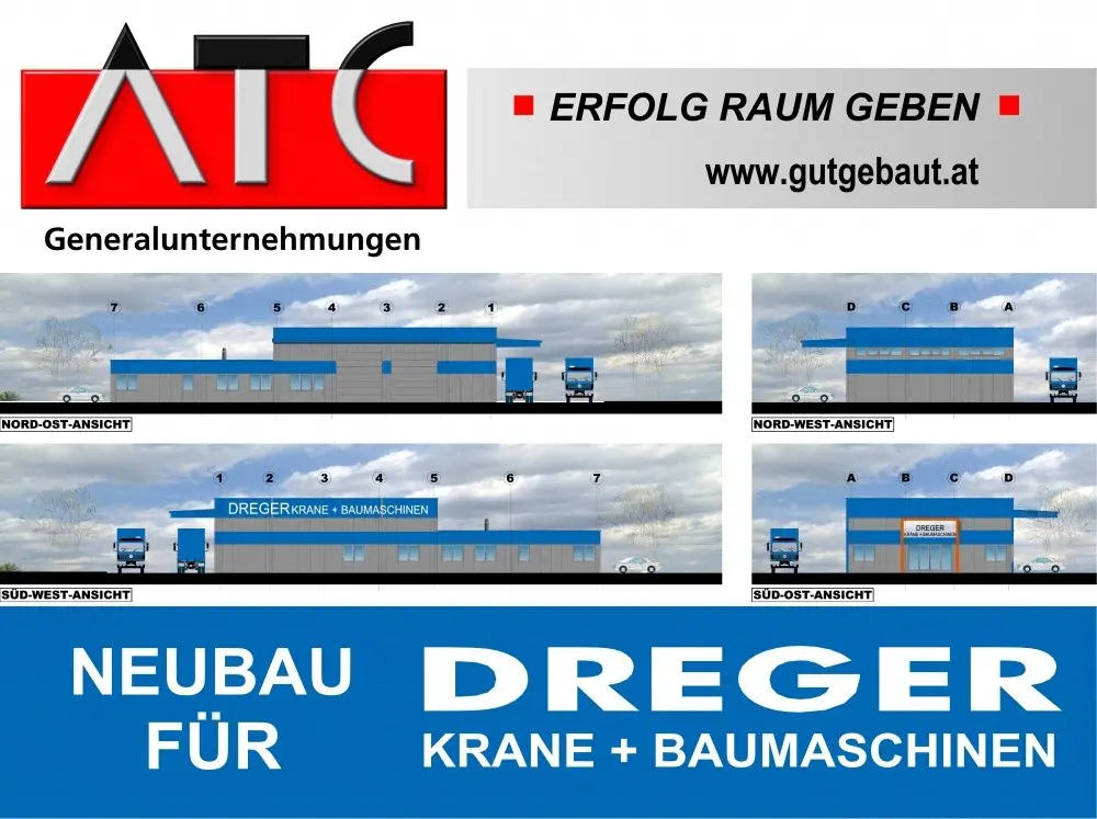 Als Generalunternehmer und Generalplaner errichten wir für die Dreger GmbH in A-8141 Unterpremstätten-Zettling ein Bürogebäude sowie eine Lager- und Werkstatthalle.
