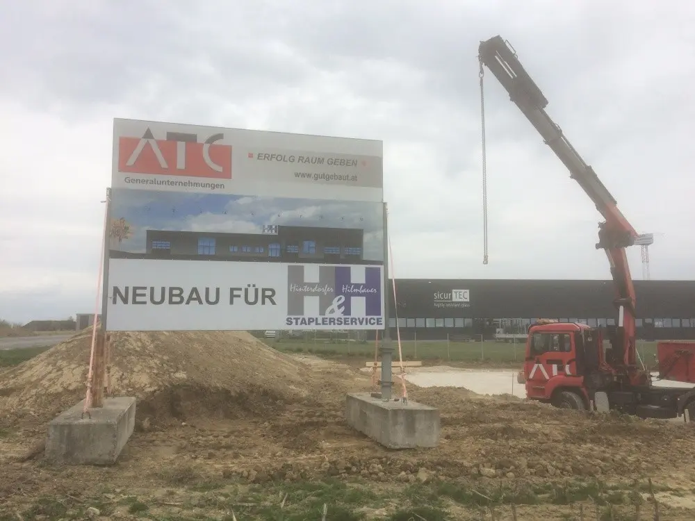 Baubeginn für den Neubau der Ausstellungs- und Werkstatthalle sowie des Bürogebäudes, als Generalplaner & Generalunternehmer, auf dem Betriebsgrundstück der H & H Staplerservice GmbH in Ardagger Stift .