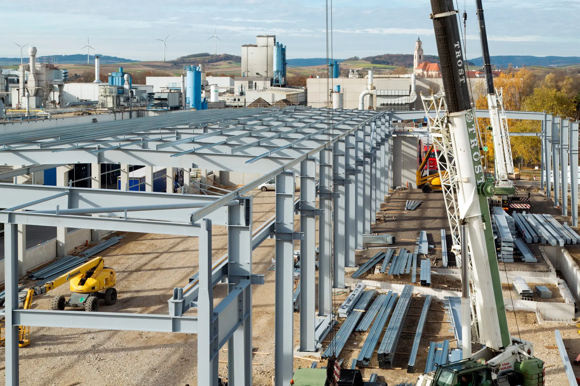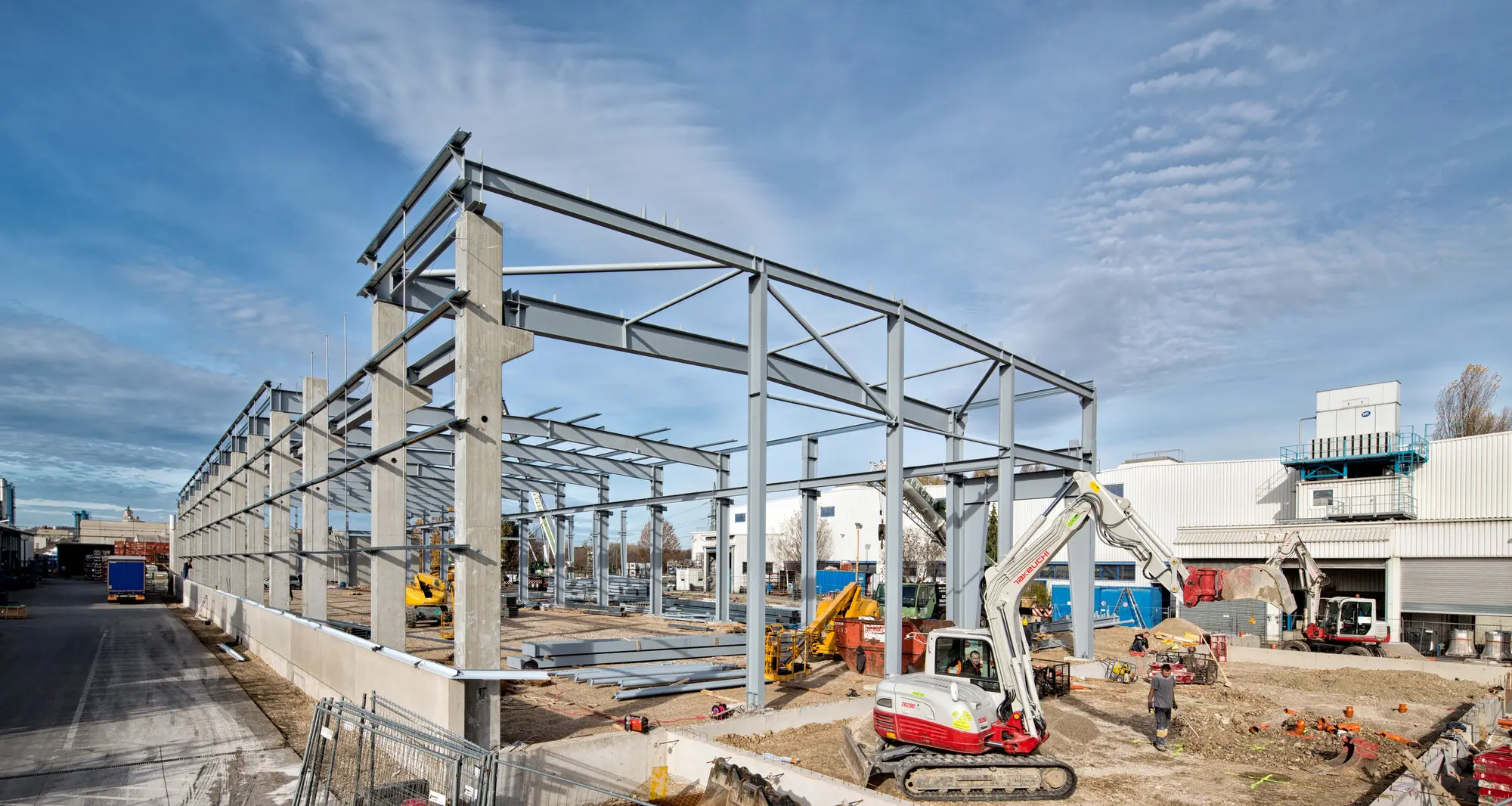 Baubeginn der Produktionshalle mit einem 3-geschoßigem Bürogebäude sowie einer Versandhalle mit den Argepartnern Porr Bau GmbH und der Held & Francke Baugesellschaft mbH.