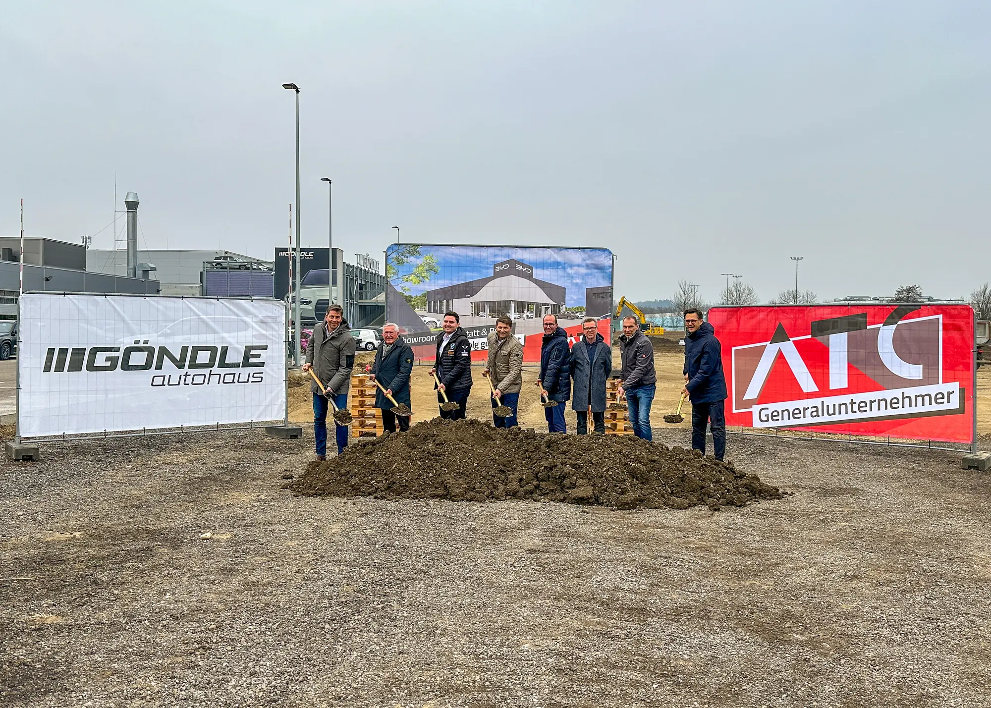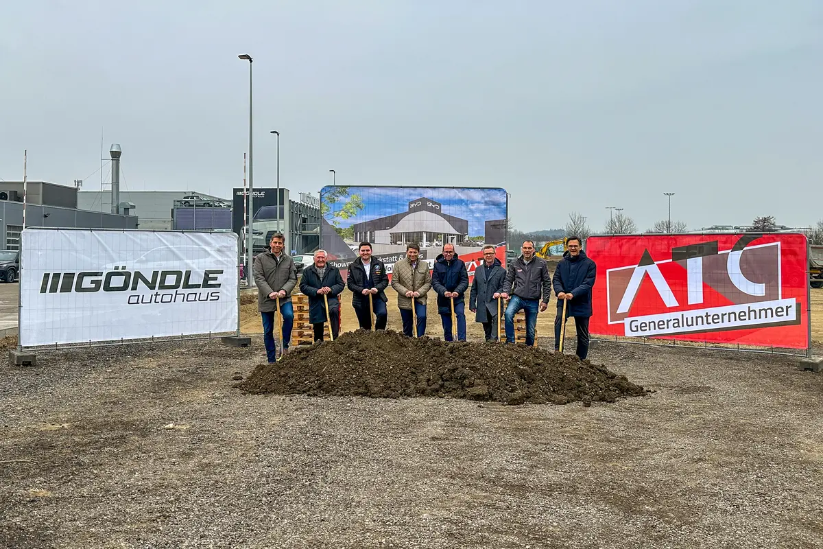 Mit dem Spatenstich am 12. Februar 2025 fiel der offizielle Startschuss für den Neubau des modernen BYD-Schauraums samt eigener Werkstatt für das Autohaus Göndle.
