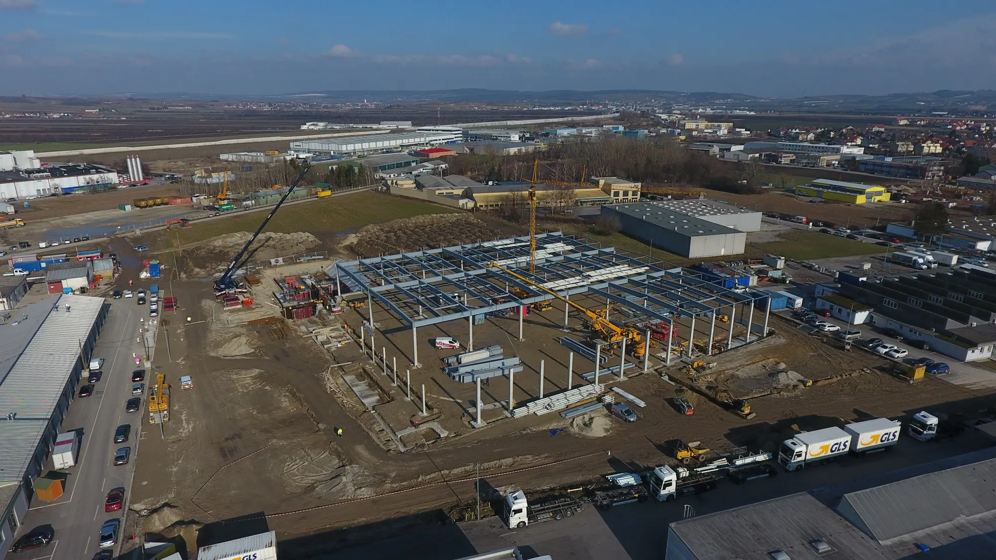 Die Montage der Stahlkonstruktion läuft auf Hochtouren. Sämtliche weiteren Bauarbeiten sind voll im Gange. Fotos der nächsten Etappe demnächst!