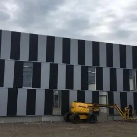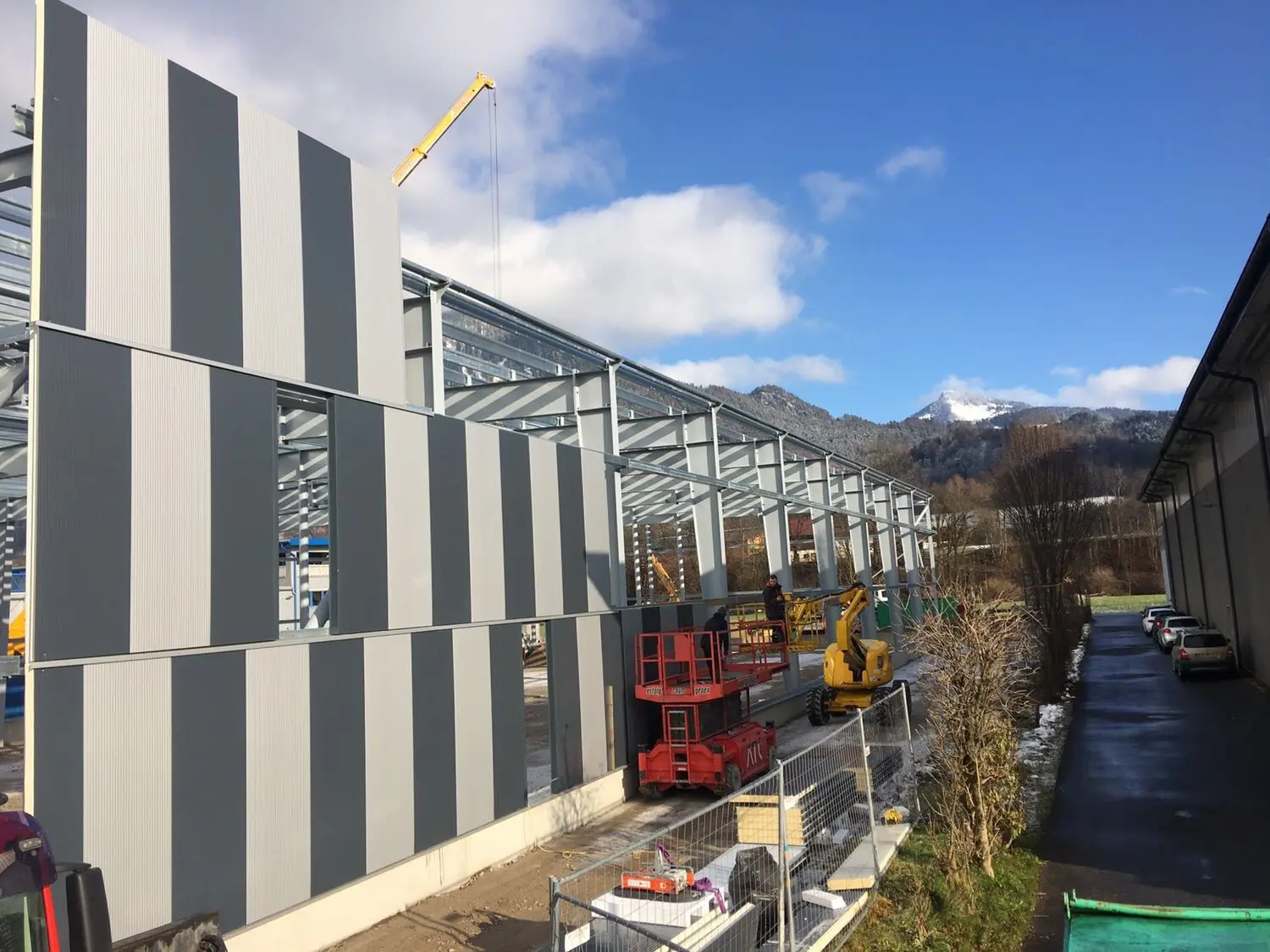 Die Fassade bei dem Neubau der Lagerhalle bei Kneissl & Senn in Erl zeigt, wie viel Gestaltungsraum man auch bei einem klassischen Industriebau hat!