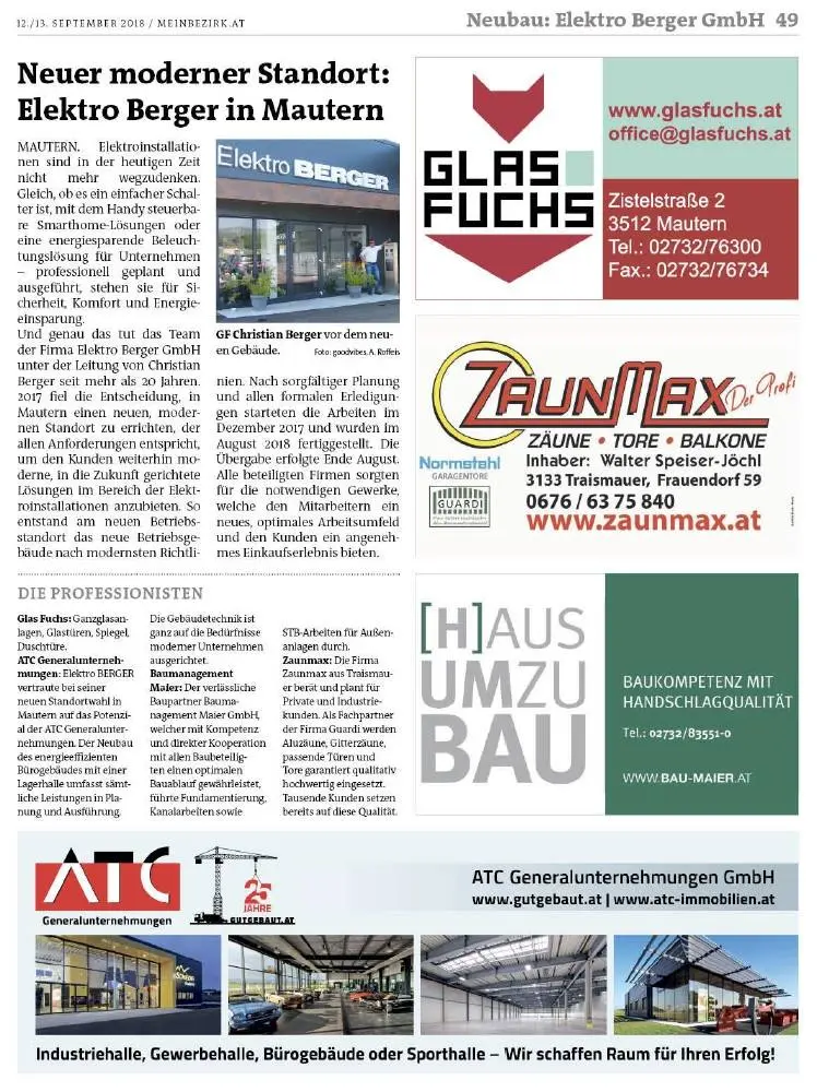 Neubau des modernen Betriebsgebäudes für Elektro Berger in Mautern fertiggestellt