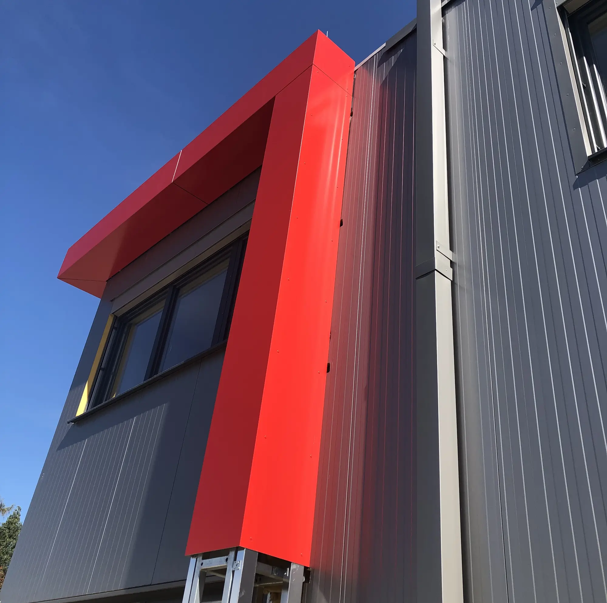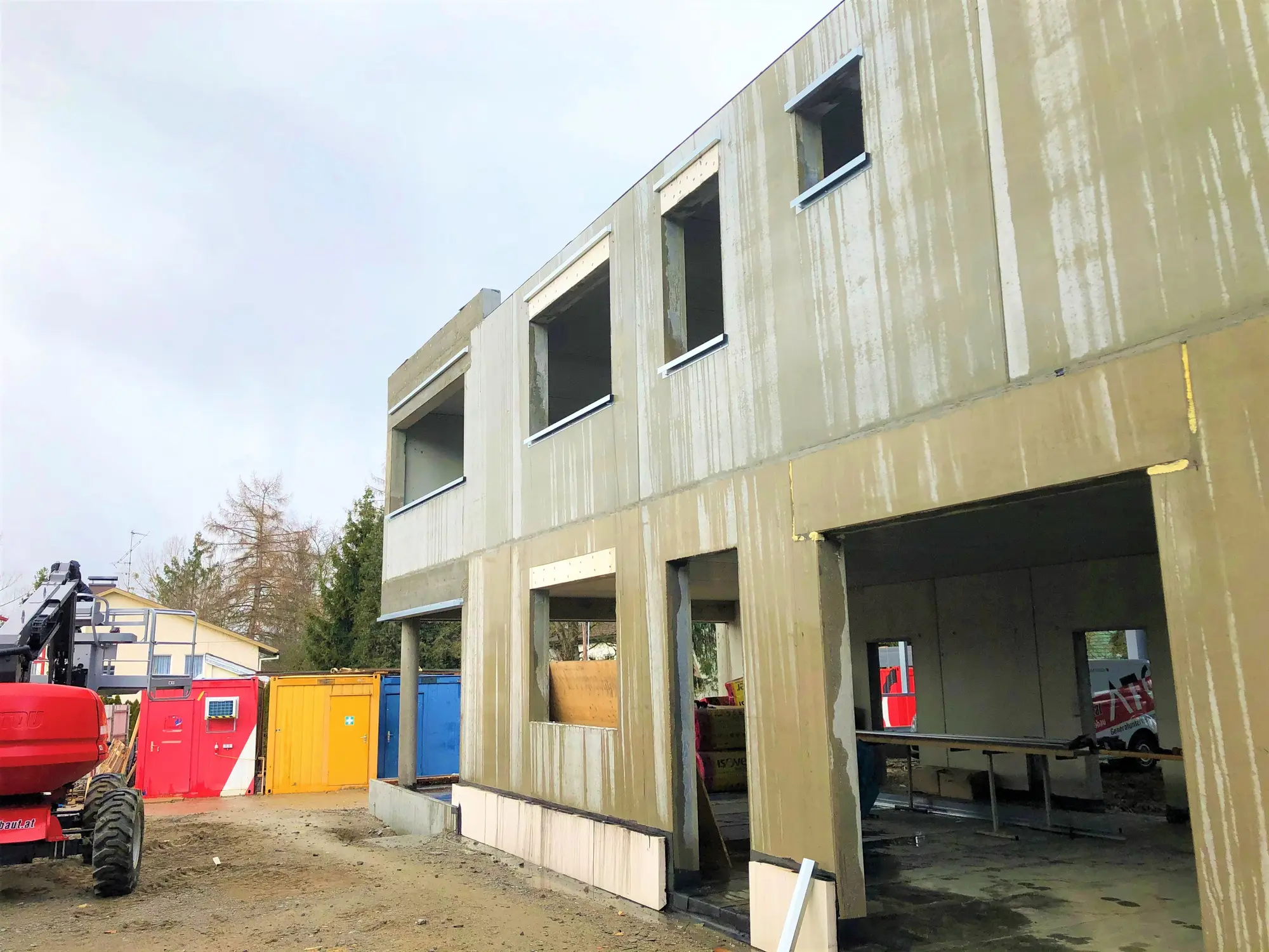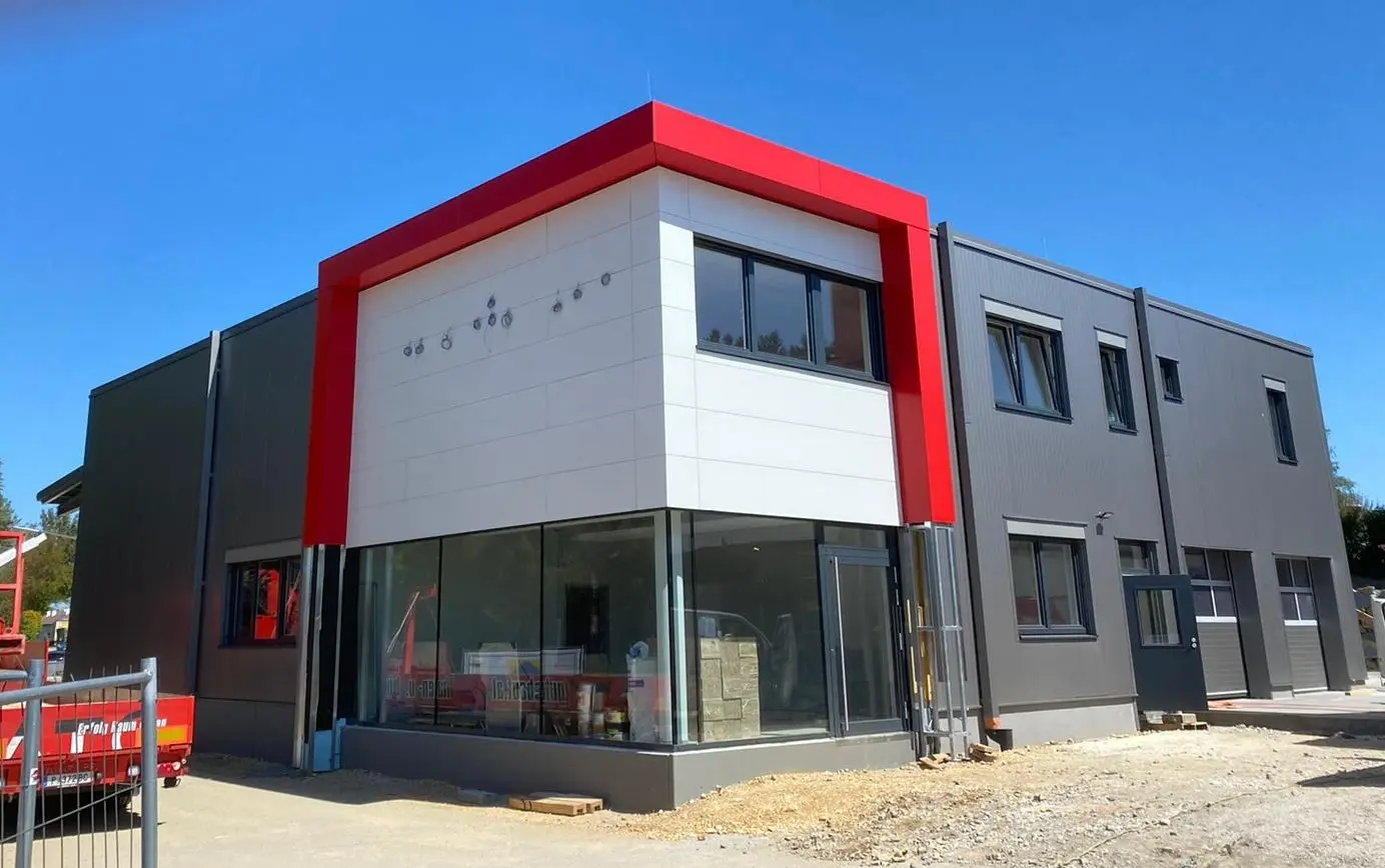 Der Neubau der Firma Ginzinger in Ried besteht aus einer Stahlhalle mit einem Massivbau, in welchem Büroräume, ein Schulungsraum, ein Verkaufsraum sowie eine Werkstatt untergebracht sind. Im Hallenbereich wurde ein zweigeschossiges Ersatzteillager eingerichtet.