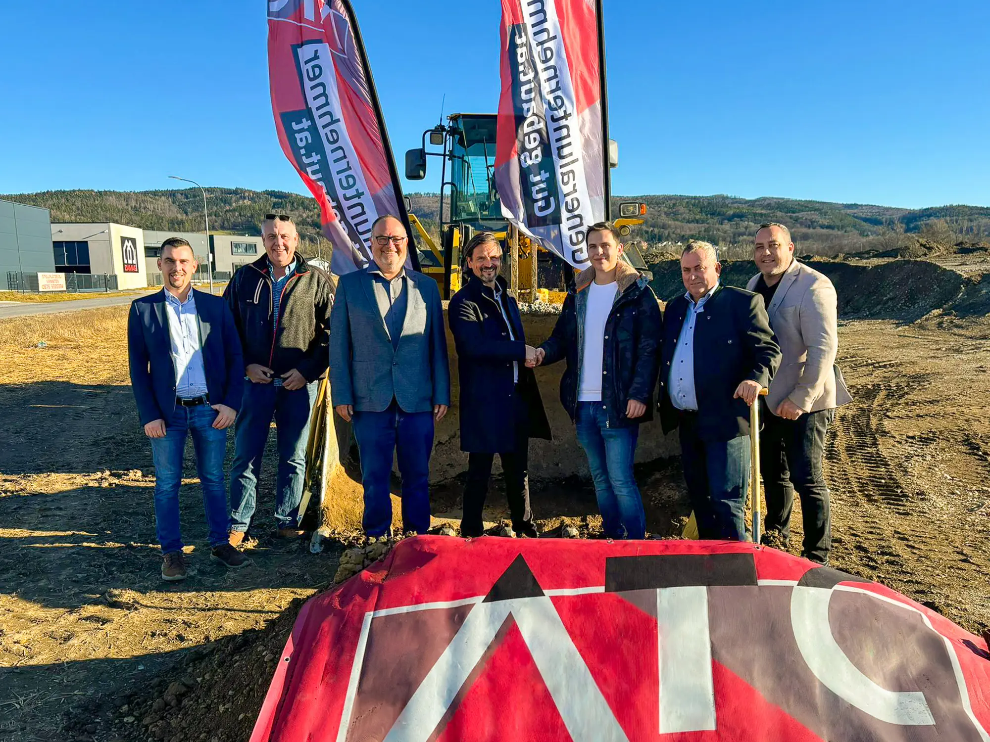 Am 30. Januar 2025 haben wir den Spatenstich für den Neubau eines zweigeschossigen Gebäudes mit Showroom & Büros sowie einer Lagerhalle in Lanzenkirchen gefeiert. Ein zukunftsweisendes Projekt, das wir als ATC Holzbau für die Bowling Betriebs GmbH realisieren dürfen!?